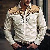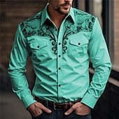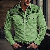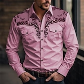More information about Men's Floral Western Shirt Printed Shirts Long Sleeve Vintage Western Style Daily Wear Going out Weekend Spring & Summer Turndown Pocket Print Button-Down Light Blue White Pink Blue Green