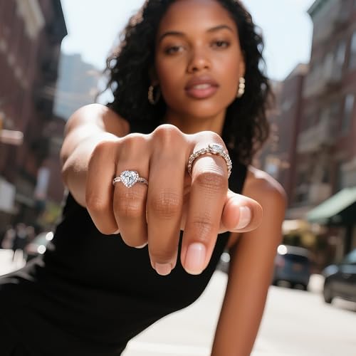 Moissanite Wedding Rings for Women 925 Sterling Silver Rings with White Gold Plated Eternity Stackable Lab Created Moissanite Engagement Rings Heart Ring