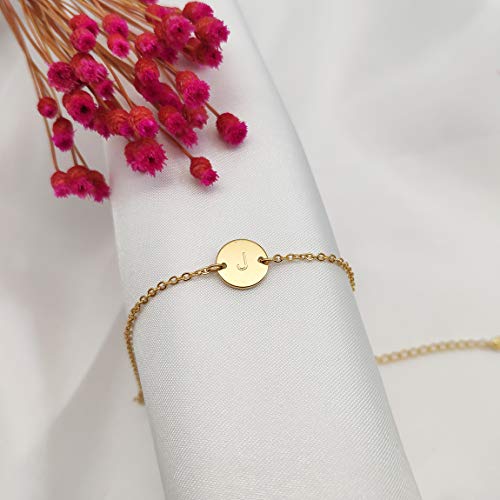 Personalized Initial Bracelet 18K Gold Plated Stainless Steel Letter Bracelet Dainty Coin Charm Bracelet Delicate Disc Name Bracelet for Women 7