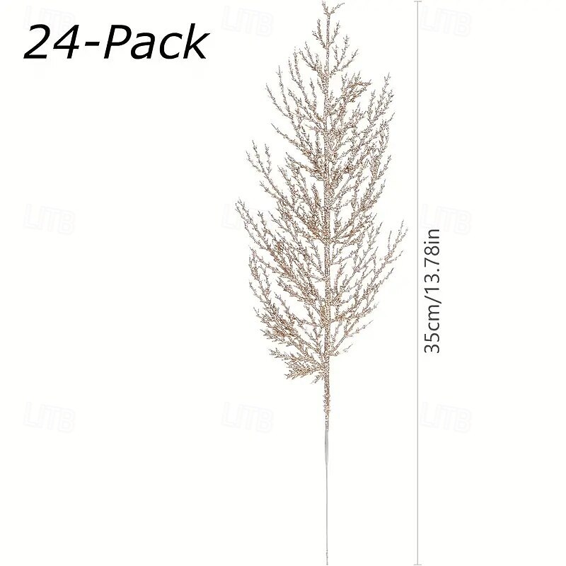 24pcs Artificial Christmas Tree Picks – Sparkling Pine Branch Decorations, Glittery Stems for Christmas Trees, Small Vase Floral Arrangements, Holiday, Wedding, and Party Decor – 14 Inches 12