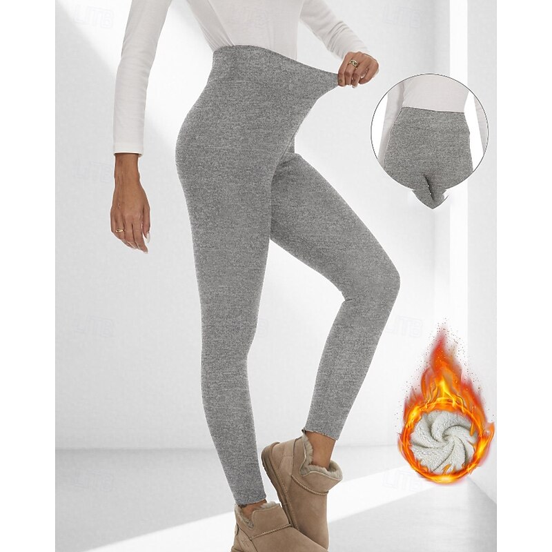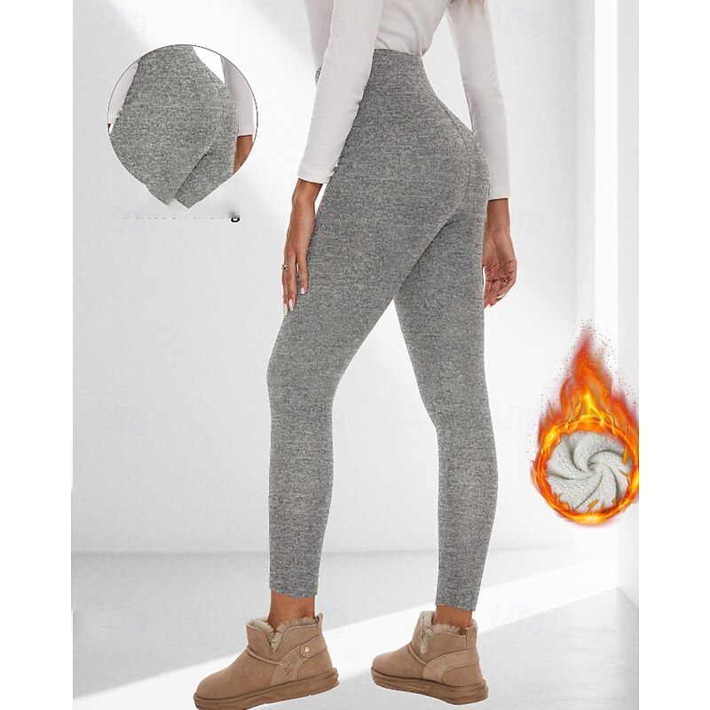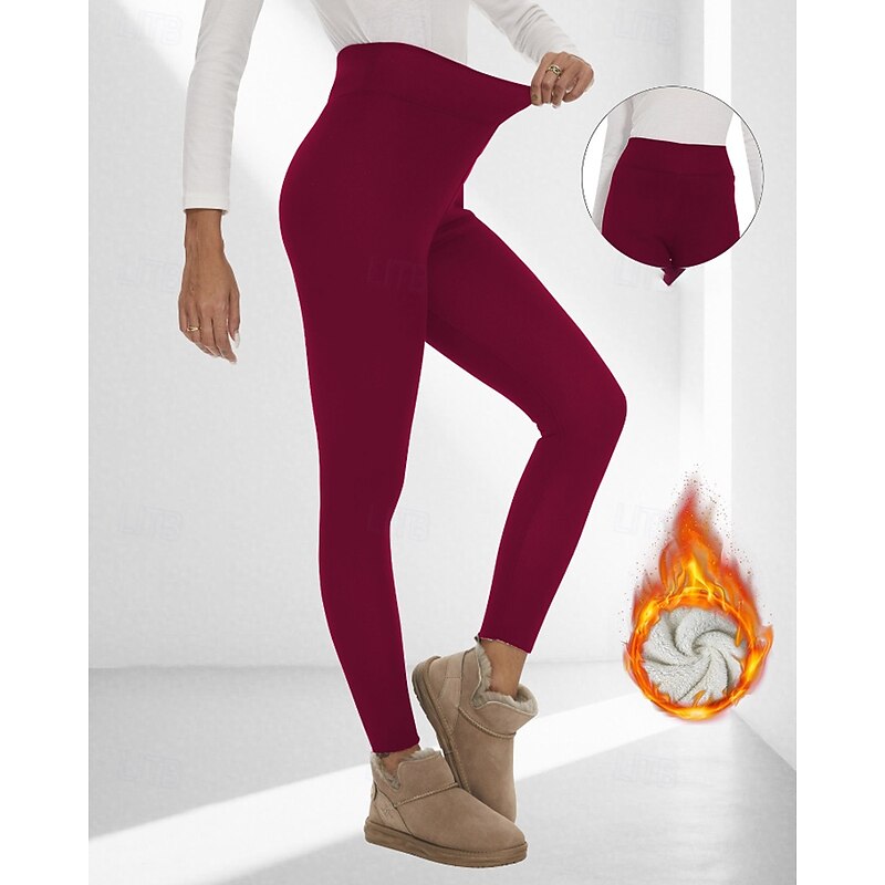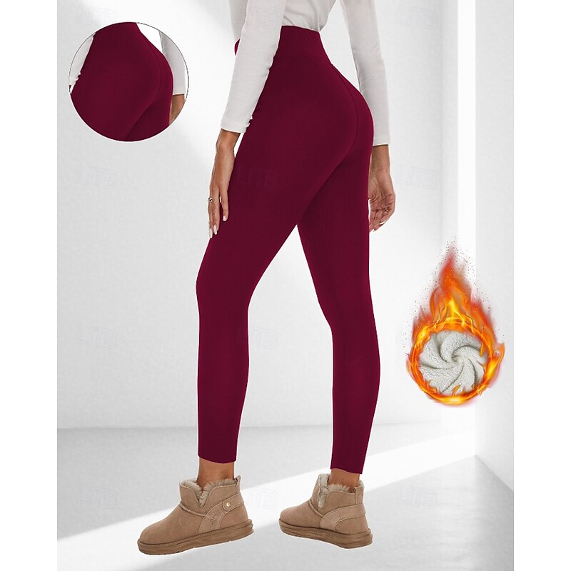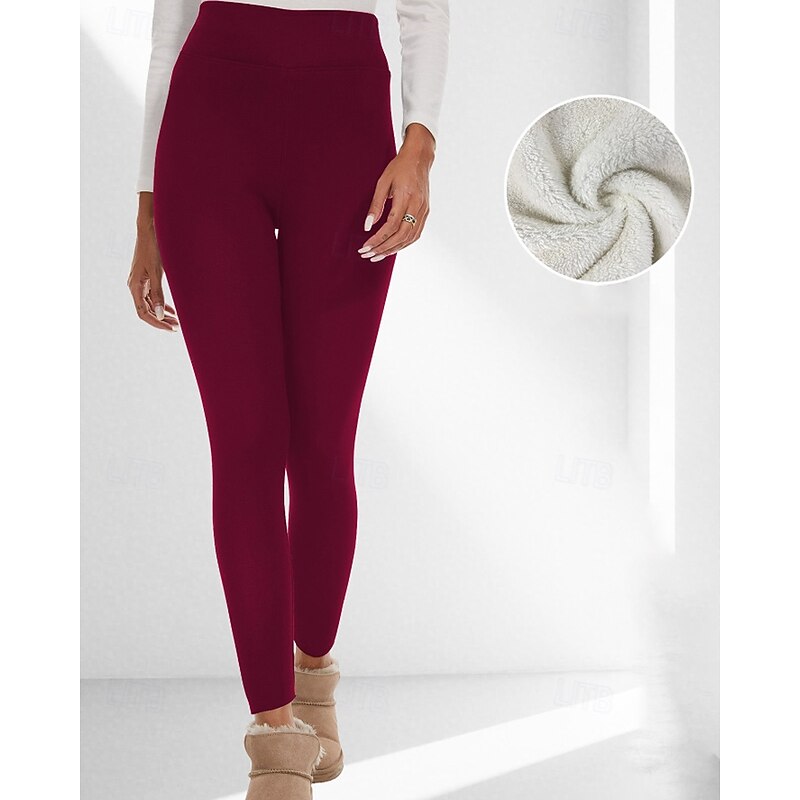More information about Women's Chinos Leggings Cozy Fleece Lined Casual Full Length Medium Waist Plain Elastic Waist Warm Comfortable Stretchy Outdoor Vacation Going out claret Light Gray Black Dark Navy Fall Winter