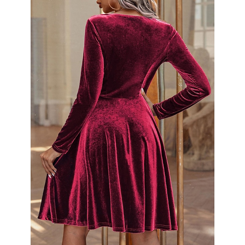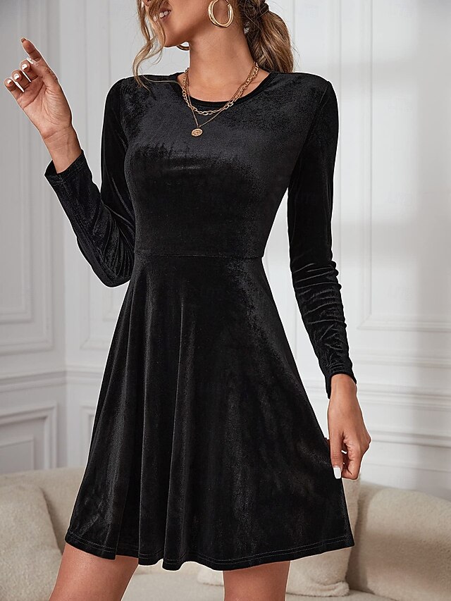 More information about Women's Black Dress Velvet A Line Dress Fashion Long Dress Crew Neck Long Sleeve Plain Regular Fit Black Red Green Spring Fall S M L XL 2XL