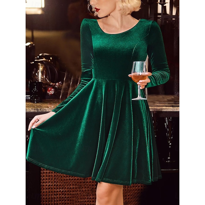 Women's Black Dress Velvet A Line Dress Fashion Long Dress Crew Neck Long Sleeve Plain Regular Fit Black Red Green Spring Fall S M L XL 2XL 12