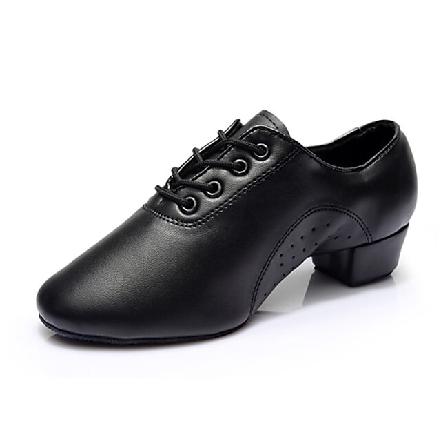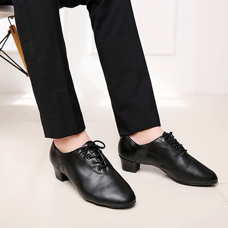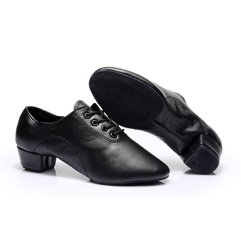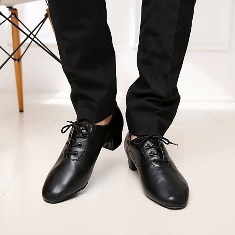 Men's Black Faux Leather Lace - Up Dance Shoes, Sturdy Low Heel & Soft Suede Sole, Comfortable & Stylish for Ballroom & Latin Dance
