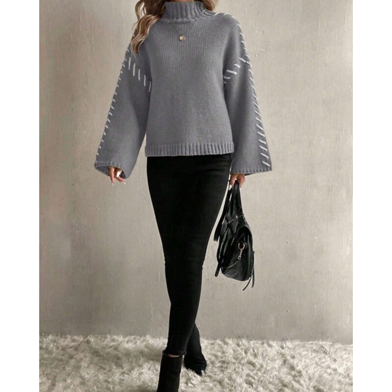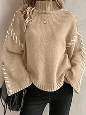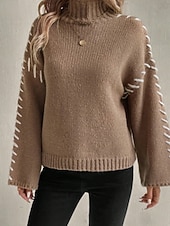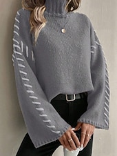 More information about Women's Sweater Pullover Fashion Casual Pure Color Ribbed Turtleneck Knitted Long Sleeve Regular Tops Knit Outdoor Daily Weekend Gray Fall Winter