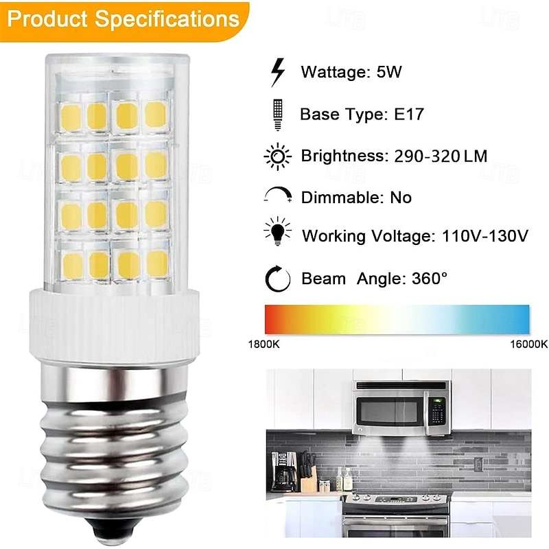 More information about E17 LED Light Bulbs 5W Non-Dimmable Refrigerator Lights, Warm White/White 2pcs 110V-130V