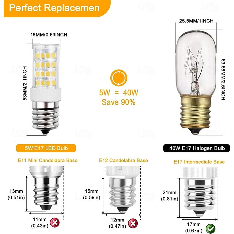 E17 LED Light Bulbs 5W Non-Dimmable Refrigerator Lights, Warm White/White 2pcs 110V-130V 3