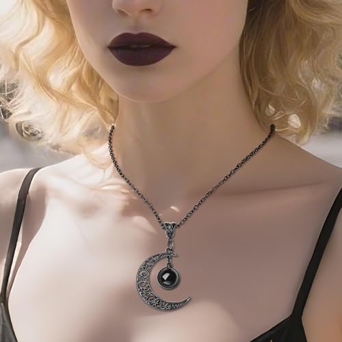 XIANNVXI Gothic Moon Necklace Goth Witch Necklaces Crescent Crystal Pendant Black Vintage Necklace Halloween Christmas Costume Jewelry Gift for Women 6