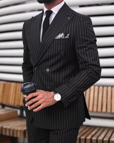 HUUTOE Pinstripe Suit for Men Gomez Addams Costume 2 Piece Slim Fit-Double Breasted Suits Blazer&Pant Wedding Formal Tux 2