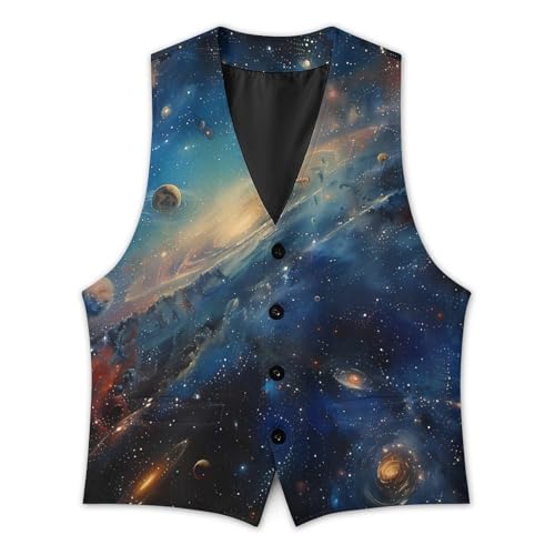 Spaces And Universe Novelty Men's Suit Vest Casual Formal Dress Vests Business Waistcoat 3