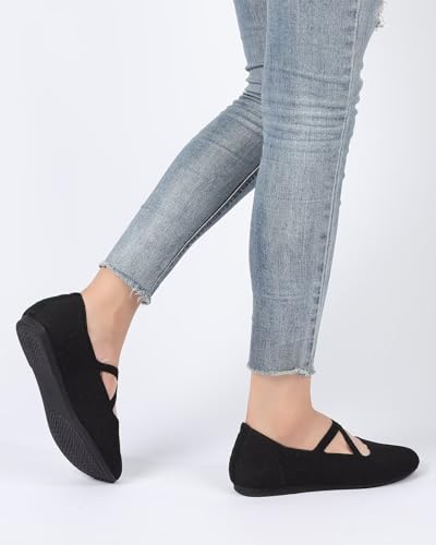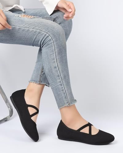 • CROSS STRAPS DESIGN: The black mary jane flats shoes for women features cross straps design for easier put on and take off, accommodating different instep heights and foot shapes, adding extra comfort and fit, making walking more comfortable