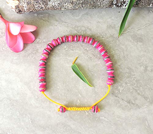 Hands Of Tibet Tibetan Prayer Mala Embedded Medicine Bracelet Yoga Healing Beads Adjustable Wrist Mala For Meditation Many Color Choices (Fuchsia Pink) Natural Himalaya Yak Bone 5