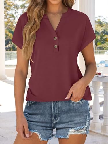 2 Pack Women's Short Sleeve Henley Tops V Neck Dressy Casual Summer Shirts 2025 Trendy Blouses Vacation Clothes 2