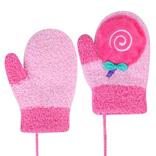 PENINSULA LOVE Toddler Squeaky Winter Gloves Warm Knit Mittens with String Fleece Ski Gloves for Baby Girls Boys 0-3 Year 2