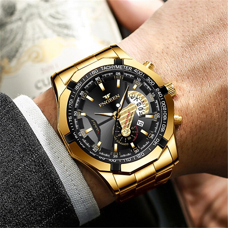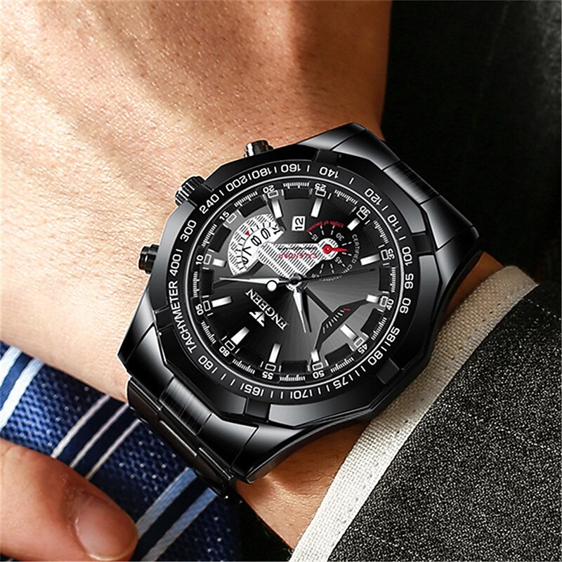 FNGEEN Men Quartz Watch Luxury Large Dial Fashion Wristwatch Luminous Calendar Waterproof Stainless Steel Strap Watch 9