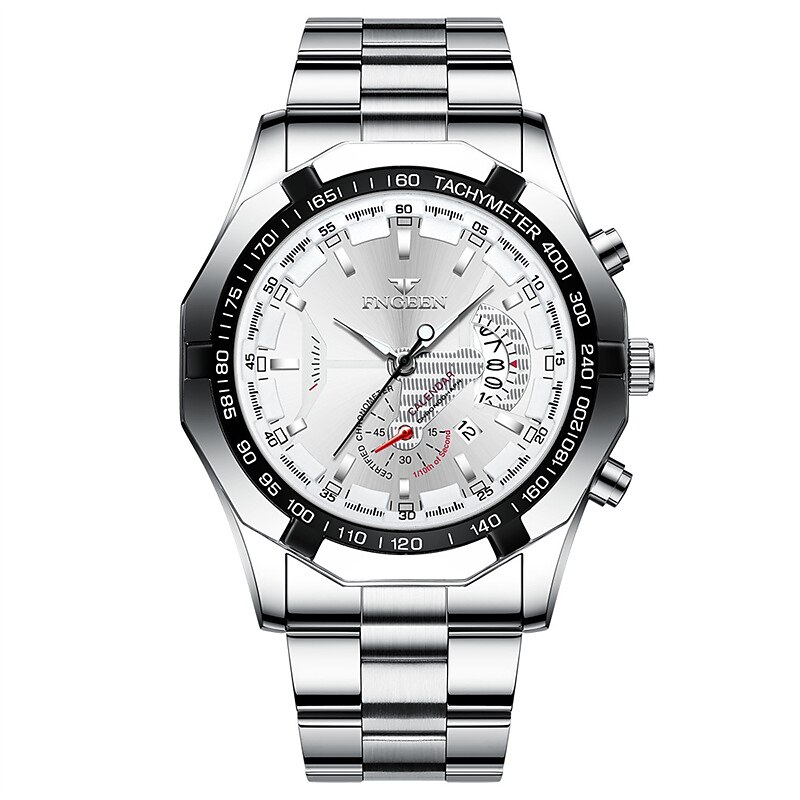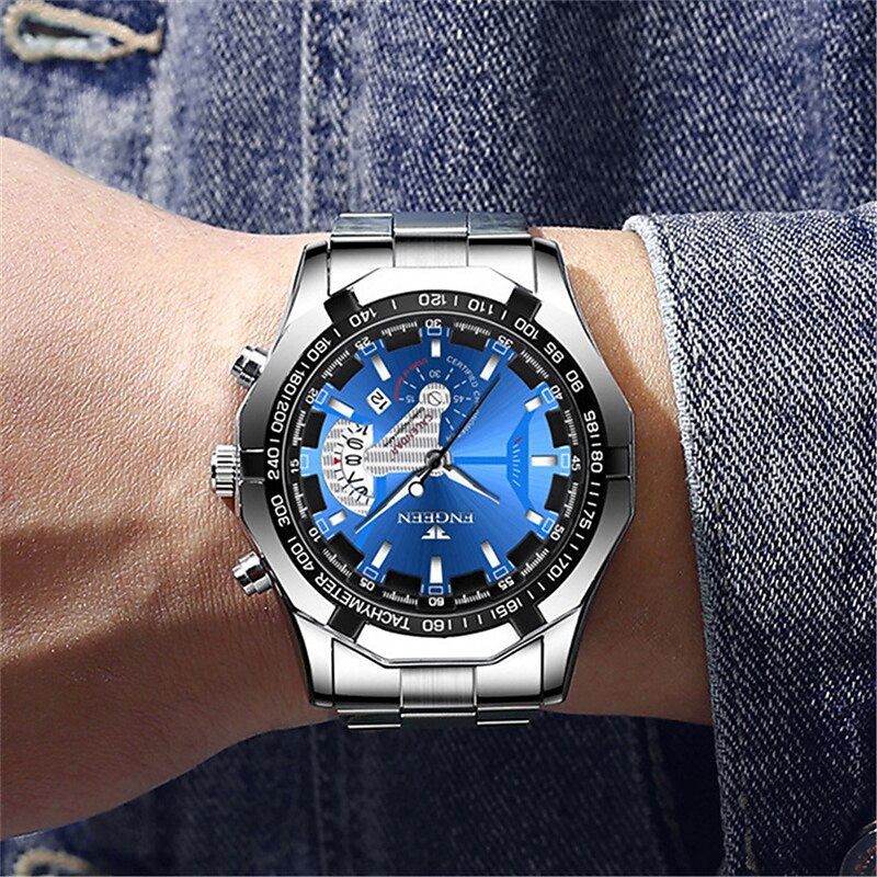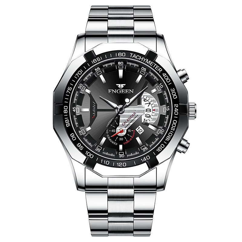 FNGEEN Men Quartz Watch Luxury Large Dial Fashion Wristwatch Luminous Calendar Waterproof Stainless Steel Strap Watch 16