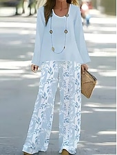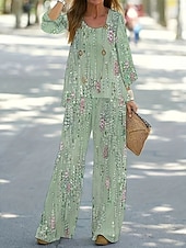 More information about Women's 2 Pieces Basic Neon & Bright Shirt Blouse 3/4 Length Sleeve V Neck Floral Print Casual Linen Like Green Summer Regular Fit