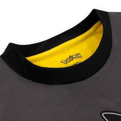 • Playful Pikachu Design: The grey t-shirt with yellow sleeves showcases a striking print of Pikachu alongside the slogans "HIGH VOLTAGE" and "READY FOR BATTLE". The unique detailing, including "0025 POKÉMON", adds an extra layer of charm to these cozy Pikachu pajamas. The matching black boys pj shorts feature a repeated Pikachu pattern with lightning bolts for an electrifying look