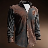 More information about Men's Distressed Rust Print Shirt Button Up Shirt Casual Dress Shirt Long Sleeve Vintage Retro Vacation Daily Streetwear Summer Spring Turndown 3D Print Collared Shirts Brown Dark Blue