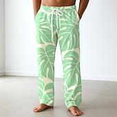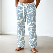 More information about Men's Palm Leaf Tropical Plants Trousers Baggy Pants Casual Pants Mid Waist Hawaiian Vacation Holiday Beach Wear Drawstring Elastic Waist Wide Leg Summer Spring 3D Print Blue Green Gray
