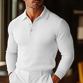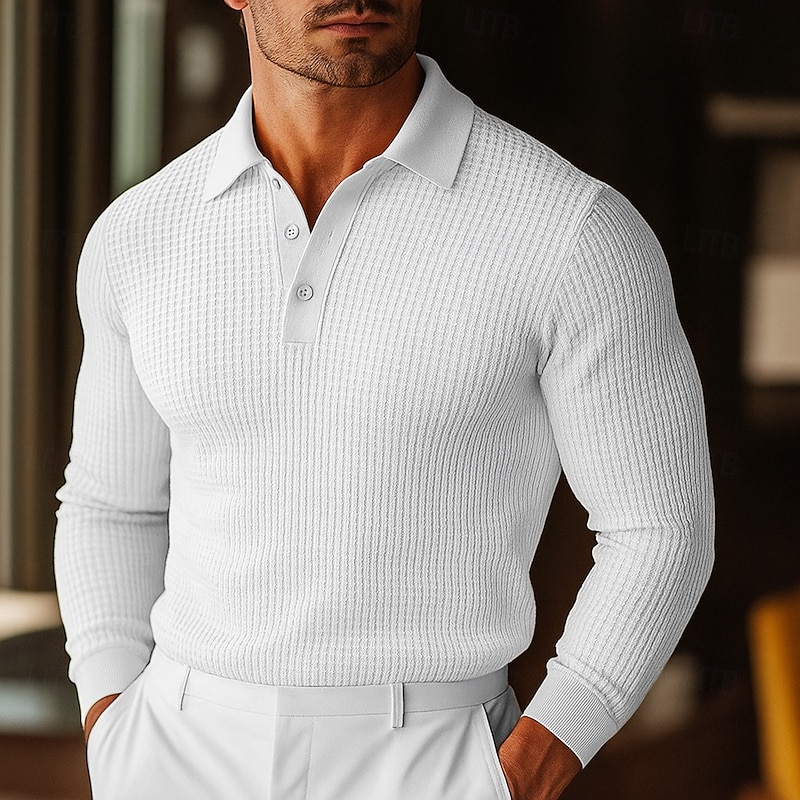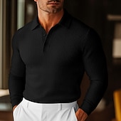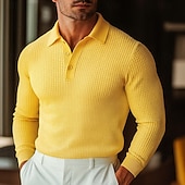 More information about Men's Waffle Polo Shirts Golf Shirt Street Casual Lapel Long Sleeve Basic Modern Plain Textured Buttons Spring Fall All Seasons Regular Fit White Black Blue Yellow Waffle Polo Shirts