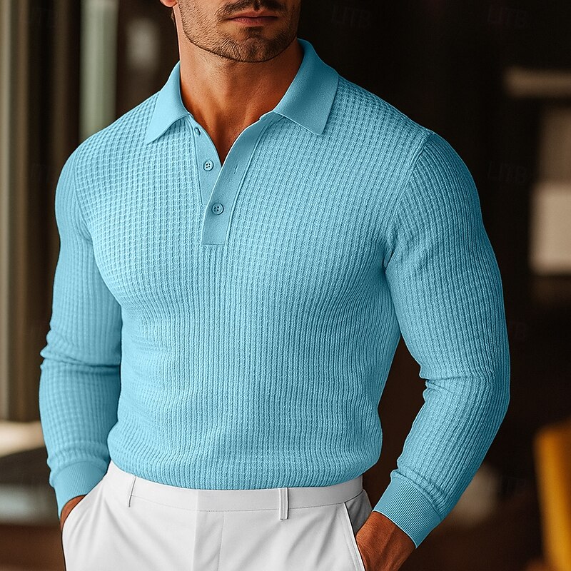 HOT ! Men's Waffle Polo Shirts Golf Shirt Street Casual Lapel Long Sleeve Basic Modern Plain Textured Buttons Spring Fall All Seasons Regular Fit White Black Blue Yellow Waffle Polo Shirts