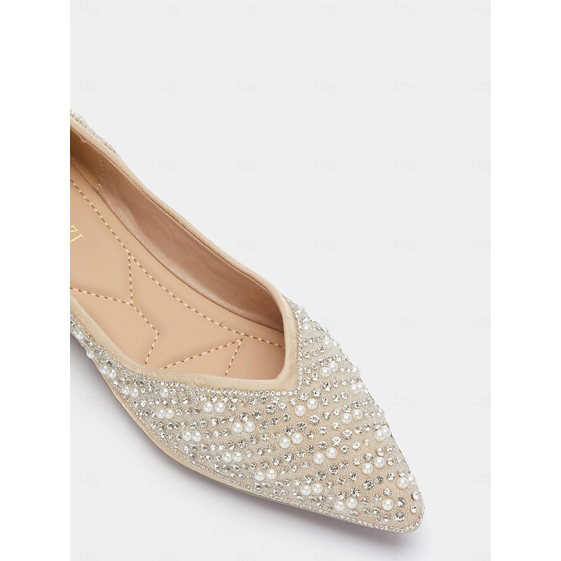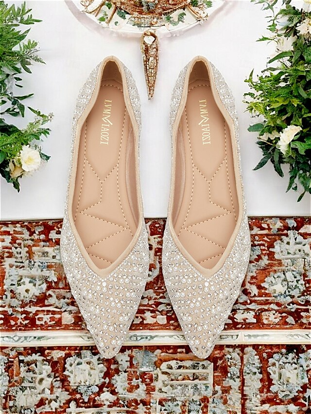 Women's Rhinestone Embellished Pointed Toe Flats - Elegant Slip-On Ballet Shoes for Weddings and Special Occasions 1