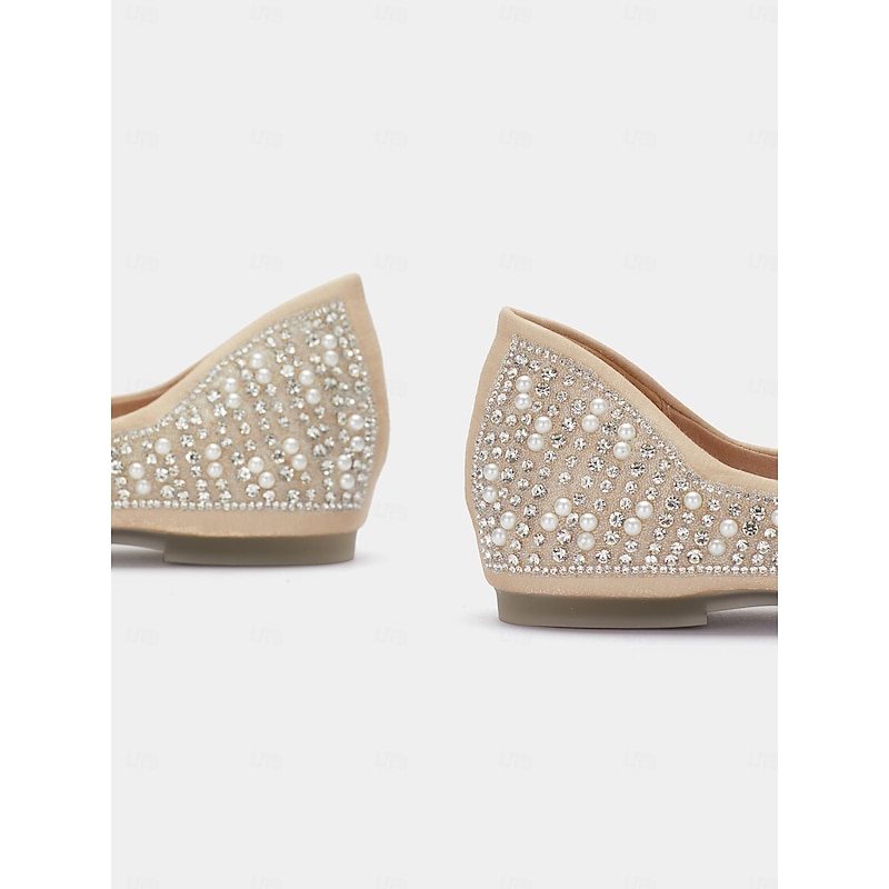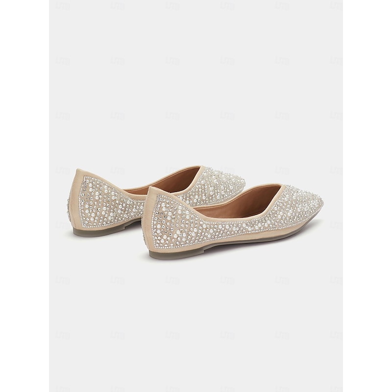 Women's Rhinestone Embellished Pointed Toe Flats - Elegant Slip-On Ballet Shoes for Weddings and Special Occasions 5
