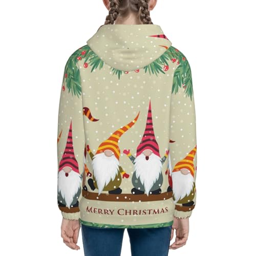 Christmas Card With Gnomes Kids Pullover Hoodies Boys Zip Up Sweatshirts Girls Athletic Clothes with Pocket 4