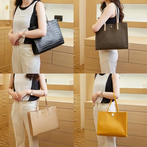 • FASHION DESIGN:Casual,Simple and fashionable women tote shoulder bag with crocodile skin patterns;Convenient magnet closure design and soft material, comfortable to carry.This tote bag holds an ipad, charge, wallet, books, phone, keys, cosmetics,wipes, and other necessities.