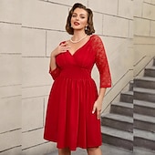 HOT ! Retro Vintage 1950s Rockabilly Above Knee Dress A Line Dress Flare Dress Plus Size Lace V Neck Fancy Dress Women's Wedding Vacation Party & Evening Adults' Dress Spring & Summer
