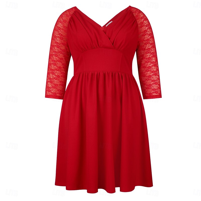 Retro Vintage 1950s Rockabilly Above Knee Dress A Line Dress Flare Dress Plus Size Lace V Neck Fancy Dress Women's Wedding Vacation Party & Evening Adults' Dress Spring & Summer 2