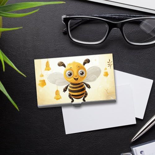 HOT ! Slim Metal Business Card Holder - Cute Bees Honey Aluminum Alloy Card Case with Buckle Closure, Holds 20 Cards & Cash, Professional Credit Card Size ID Holder for Men Women Gift