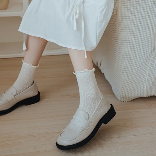 Ruffle Socks Women Frilly Socks, Cute White Summer Autumn Ankle Casual Socks for Girls 5 Packs, Soft Breathable Cozy 4
