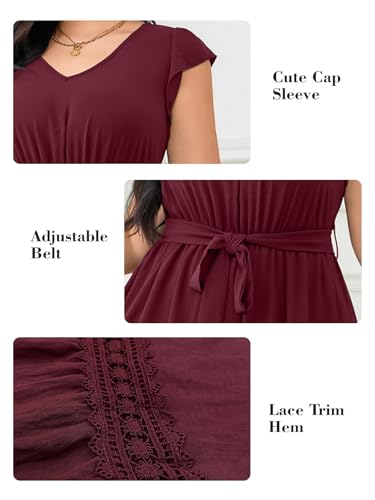 • Feature: V Neck/ Cap Sleeve/ Lace Trim/Casual Dresses for Women/ Sleeveless Maxi Dress with Belt/ Plus Size Dress for Curvy Women/ Summer Dress/ Ruffle Hem Dress/ A-Line Dress/ Flowy Dresses for Women 2025 /Elegant Plus Size Dresses for Women