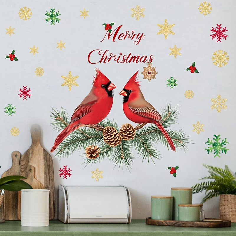 $8.49 - Christmas Sticker Wall Decals Colorful Parrot Pinecone Snowflake Removable Vinyl Mural Holiday Party Bedroom Entryway Home Background Decoration For Christmas Festival Atmosphere 2025. Shop for cheap Sticker online? Buy at lightinthebox.com on sale today!