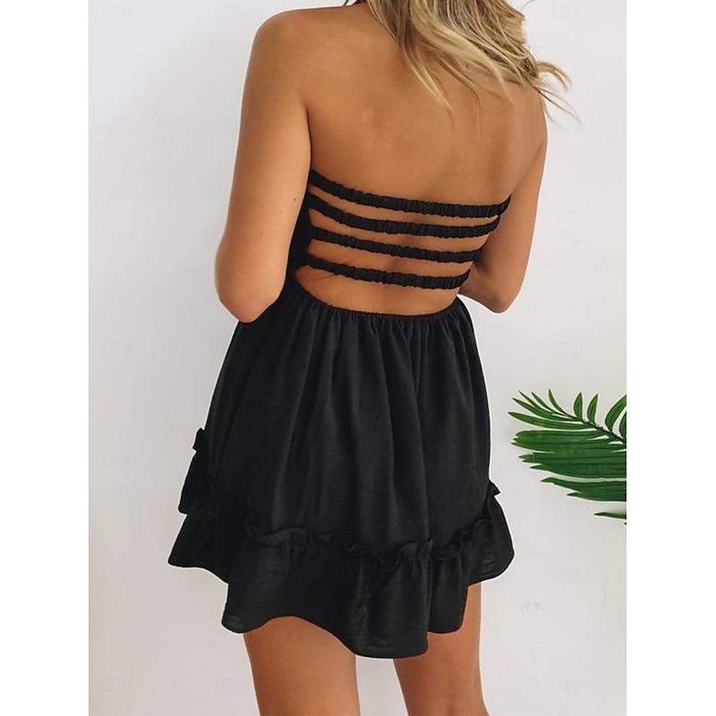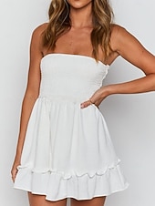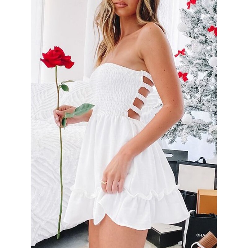 More information about Women's Mini Dress Petite Dress White Dress Summer Dress Elegant Dress Daily Club Summer Dress Regular Fit Plain Pure Color Sleeveless Strapless Cold Shoulder Black White Summer