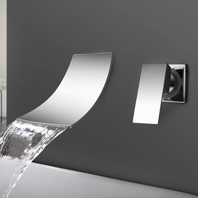 More information about Wall Mount Bathroom Sink Mixer Faucet Chrome, Concealed Washroom Basin Taps Waterfall Spout Single Handle 2 Hole, Rough in Valve Mixer Bathtub Bath Taps