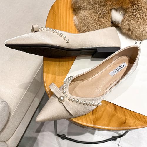 • 【TOE DESIGN】:Women's Pearl Flat Shoes The Toe Is Designed With A Pointed Head, Which Is Clean And Neat. The Toe Space Is Extended And Comfortable, Natural And Moisture-Proof. Every Simple Detail Shows The Meticulous Workmanship.