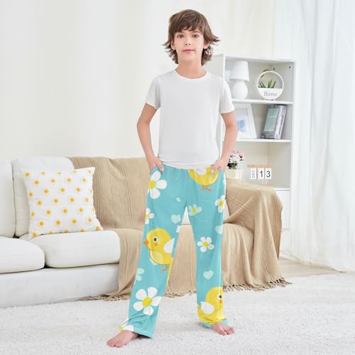 ZZXXB Lovely Chick Flowers Boys Long Pants Soft Trousers Elastic Waist Kids Lounge Bottoms with Pockets S-XL 4