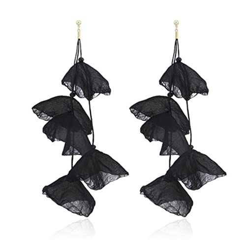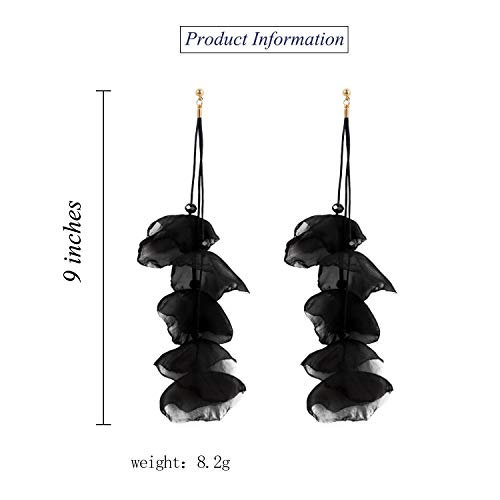 Floral Chiffon Earrings for Women - Tiered Flower Statement Tassel Earrings Long Chandelier Drop Dangle Earrings for Daily Dresses Wedding Holiday Party