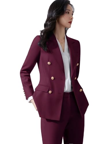• 【2 Pieces Business Women Suiting】Double breasted, button closure for blazer. Straight leg pants, button and zipper closure, high waist design keeps you nice all day, the long pants for women with one functional slant pocket.
