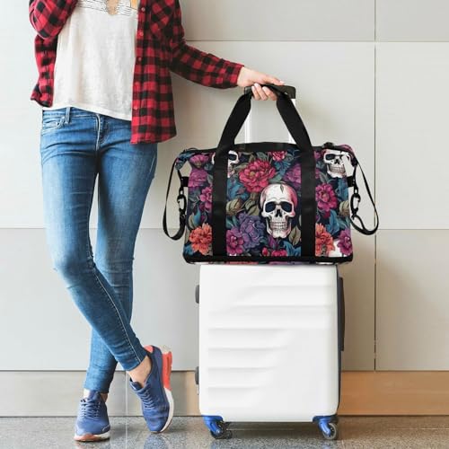 HOT ! senya Skull Weekender Bag for Women, Purple Flower Skull Gym Bag Sports Duffle Bag Travel Tote Bag with Toiletry Bag Shoes Compartment Dry/Wet Separation Swim Bag, A06Y22017