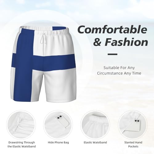 Finnish Flag Breathable Fit Trends Men's Swim Trunks Board Short with Waist Elastic Band Swimming Trunks 6