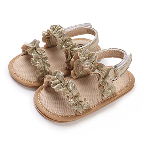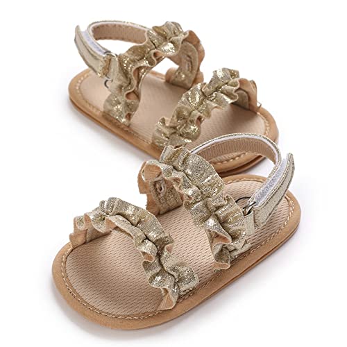 Summer Children Infant Toddler Shoes Girls Sandals Flat Bottom Non Slip Open Toe Solid Color Cloth (Gold, 4 Infant) 1