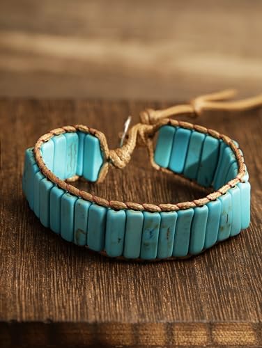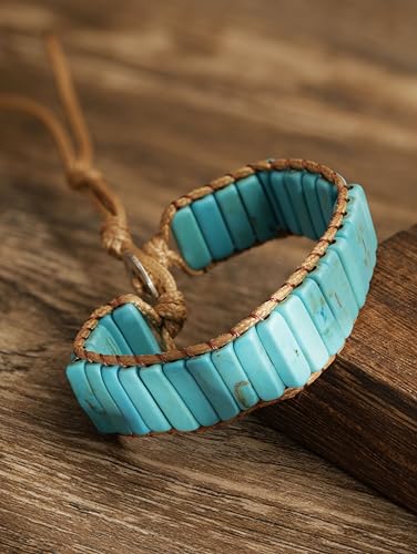 MINACHI Natural Stone Wrap Bracelets for Women Men Bohemian Bracelets Created Turquoise Rectangular Beads Jewelry 5