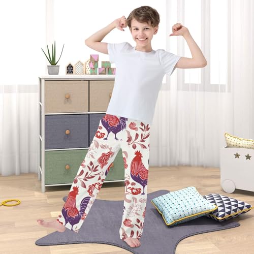 Rooster Rose Floral Boys Long Pants Soft Trousers Elastic Waist Kids Lounge Bottoms with Pockets S-XL 5