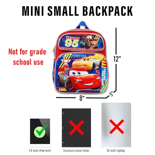Disney Cars Mini Backpack with Lunch Box for Kids - Bundle with Pixar 12" School Bag, Lunch Box, Stickers, More | Pixar Cars School Supplies for Boys 7