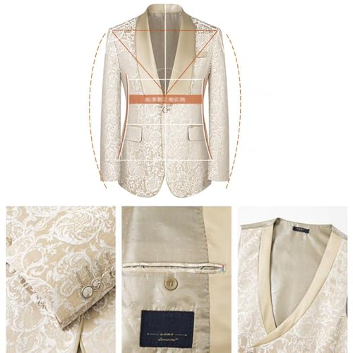 Mens Suits, 3 Piece Tuxedo Jacket Color Matching Jacquard Slim Fit 1 Button Business Casual Wedding Blazer Dress Banquet Host Formal Jacket Men's Clothing,M, Off White 4