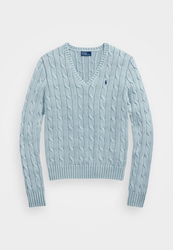 HOT ! CABLE-KNIT COTTON V-NECK SWEATER - Jumper - light chambray